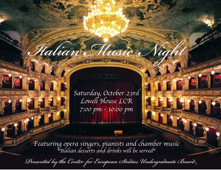 Harvard University, Lowell Hall Pianist, Harvard Center for European Studies “Italian Music Night” (23 October 2013)